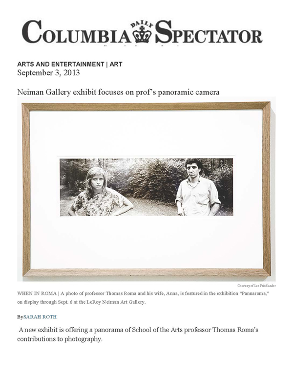 2013 Columbia Spectator "Neiman Gallery exhibit focuses on prof's panoramic camera" by Sarah RothColumbia Spectator, September 3, 2013 OverviewAnna RomaMay 5, 2017 Facebook0 Twitter LinkedIn0 Reddit Tumblr Pinterest0 0 Likes