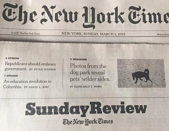 "Mondo Cane" in The New York Times Photos from the dog park reveal pets' wilder sides by Giancarlo T. Roma Plato's DogsAnna RomaMarch 6, 2015 Facebook0 Twitter LinkedIn0 Reddit Tumblr Pinterest0 0 Likes
